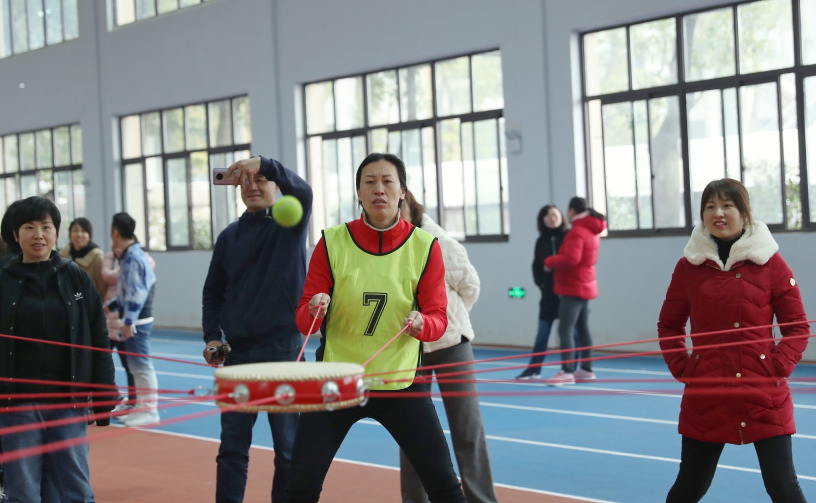 本次趣味賽設(shè)有《擁抱明天》、《奔跑吧,女神》和《同心擊鼓》三個項目,省體育系統(tǒng)24個單位組成的21支隊伍和裁判員、教練員、工作人員共200余人參與。
