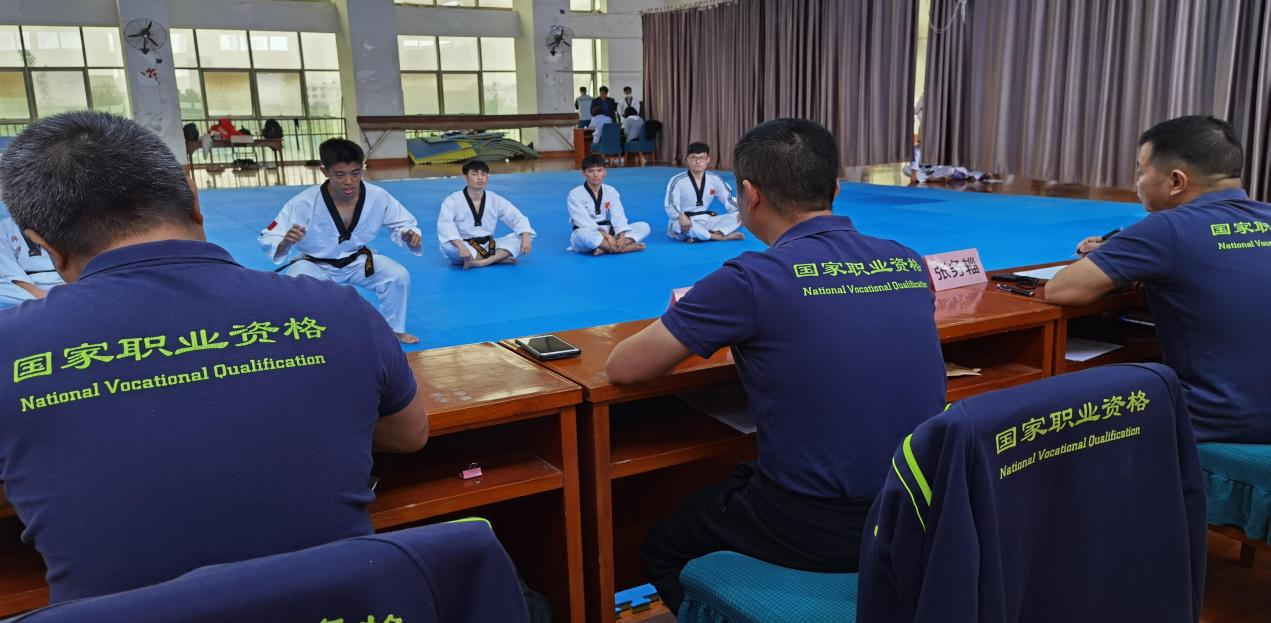 鑒定考核分為理論考試和實操考核兩部分,考試過程中考評員及考務工作人員組織嚴密,分工明確。理論考試紀律嚴明,實操考核嚴謹有序??荚噰栏駡?zhí)行國家體育總局職業(yè)技能鑒定指導中心《關于跆拳道項目國家職業(yè)資格鑒定的考試程序和標準》、《江西省體育局新冠肺炎疫情期間體育行業(yè)職業(yè)技能培訓鑒定工作預案》的要求,落實疫情防控管理措施,確??荚囋诎踩行虻沫h(huán)境中進行。本次鑒定考評合格者將由國家體育總局、國家人力資源和社會保障部統(tǒng)一印制頒發(fā)社會體育指導員跆拳道《職業(yè)資格證書》。