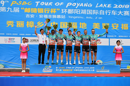本賽段賽道全程16公里,是本屆環(huán)鄱賽設(shè)置的最短賽程。來自德國助力車隊(duì)的選手阿德內(nèi)?威廉簡僅用35分38秒完成比賽,奪得了本賽段的冠軍。昨日獲得爬坡王(圓點(diǎn)冠軍衫)的厄立特里亞車隊(duì)選手耶馬內(nèi)?謝加伊表現(xiàn)勇猛獲得亞軍并且繼續(xù)保有圓點(diǎn)冠軍衫。塞爾維亞CCN梅達(dá)勒車隊(duì)選手馬爾科?帕夫利察獲得季軍。荷蘭猴城樂園車隊(duì)選手馬爾滕?德容以第八名完成比賽的成績繼續(xù)保有個(gè)人總成績(藍(lán)冠軍衫)。最佳大中華(粉紅冠軍衫)和沖刺王(橙冠軍衫)獲得者均為中國熊貓CCN車隊(duì)選手彭源堂,這也是他連續(xù)三站同時(shí)穿上兩件領(lǐng)騎衫。
