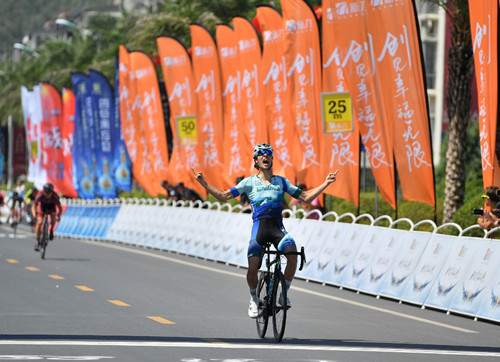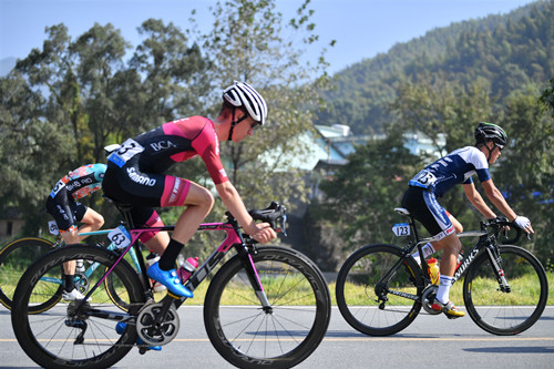 本賽段全程87.9公里,繼續(xù)沿用以往的經(jīng)典三圈盤山公路設(shè)計(jì),賽道中海拔落差最高可達(dá)600米,蜿蜒盤旋的山路對(duì)選手的爬坡能力和體力都是非常大的考驗(yàn)。上午9點(diǎn)準(zhǔn)時(shí)發(fā)車后,運(yùn)動(dòng)員開始了兩個(gè)多小時(shí)的艱難騎行,中途不斷有選手因?yàn)楦鞣N原因放棄比賽,最終綜合實(shí)力強(qiáng)勁的美國(guó)瑪吉斯野生世代洲際車隊(duì)選手塞繆爾?約瑟?布阿德曼以絕對(duì)優(yōu)勢(shì)率先沖過(guò)終點(diǎn),收獲本站冠軍,捷克布拉格斯巴達(dá)車隊(duì)選手弗朗齊歇克?漢沙和澳大利亞新南威爾士車隊(duì)選手馬太?卡倫?迪納姆隨后沖線,分獲第二、三名。四色領(lǐng)騎衫與前兩賽段相比發(fā)生變化:本站冠軍――美國(guó)瑪吉斯野生世代洲際車隊(duì)選手塞繆爾?約瑟?布阿德曼接管了個(gè)人總成績(jī)(藍(lán)冠軍衫);法國(guó)國(guó)防車隊(duì)選手朱利安?阿馬多利勇奪登山王(圓點(diǎn)冠軍衫)。而中國(guó)江西新力物業(yè)車隊(duì)選手彭源堂和美國(guó)瑪吉斯野生世代洲際車隊(duì)選手肯特?貝爾納迪尼?羅斯憑借累計(jì)的優(yōu)勢(shì)和穩(wěn)定的發(fā)揮繼續(xù)將最佳大中華(粉紅冠軍衫)和沖刺王(橙冠軍衫)留在了自己身上。